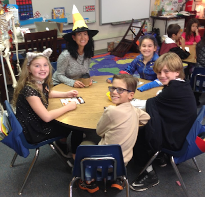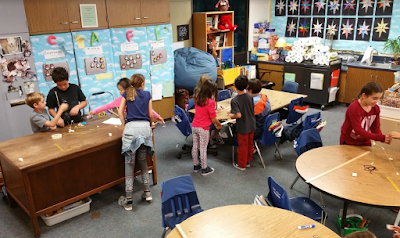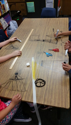 After processing the learning, Mrs. Yollis gave every team an additional five minutes to modify and improve their tower...just for fun. Almost everyone was able build a free-standing structure. Meter sticks were brought out and the height was measured.